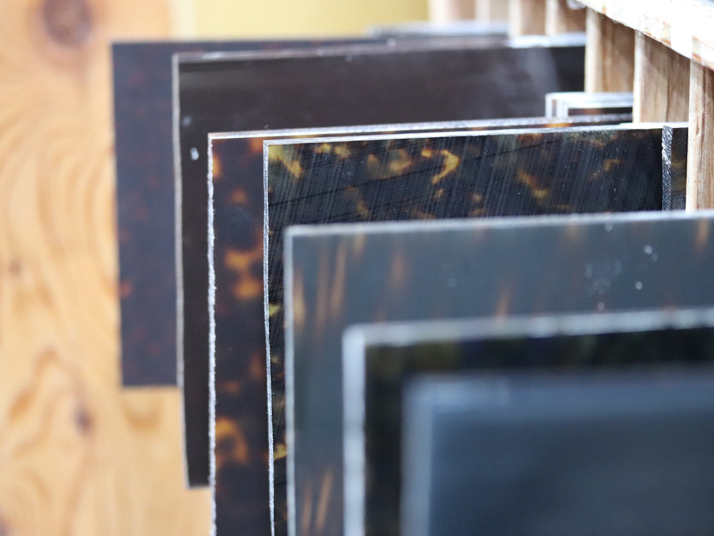 アセテートの色は、塗装ではなく素材そのものに色を練り込んでいるため、削っても色が消えることはありません。