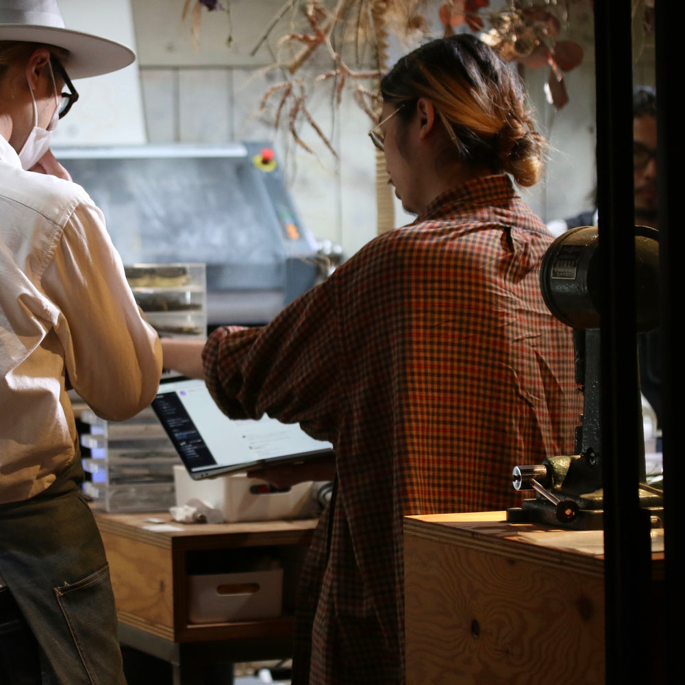 人間、会話をする時って気づかないうちに言葉以外の身振りや表情などからもたくさん汲み取ろうとしますよね。 ストライクでのメガネの提案も身振り手振りと同じように自然なコミュニケーションになればな、と思うんです。 自分で描いたデザインを提案することが相手のことを知ること、ひいては自分自身を知ることにつながっていくのではないかなと。 ご要望をそのまま聞いてしまうのではなく、思いついたことやこうしてみたいですねっていうことを投げかけてみると、お客様自身も想像できなかったような理想のメガネが見つかったりします。 自分のしたいこととお客様の要望。 そこのバランス感が面白い。 俺ってこんなデザインが描けるんやとか、こういう提案ができたなとか。 めがねが面白いのって、見え方とかフィット感とか客観視できる物差しが明確にあってフィードバックもしやすいところです。 答えを探すのが苦手なんですが、そんな小さな答え合わせがたくさんあるのが良いですね。 ごまかしが効かない。 例えば、洋服だとセンスだけで語られることがあるじゃないですか。 格好良い方が良いと言われた時に、そもそもなんで格好良い方が良いのか、格好良いとは何かを聞きたいんですよ。 しかしそのなんでっていう部分を掘り下げきれない….。 その点めがねは絶対に無くしてはいけない土台があります。