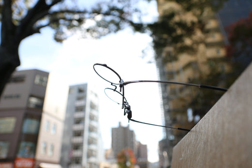 その他、福岡店のみの取り扱いブランド KameManNenカメマンネンの跳ね上げ式眼鏡がございます。